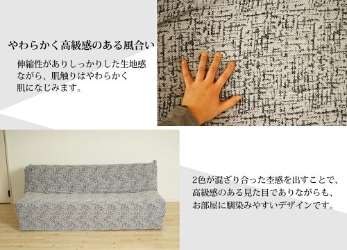 表記サイズ 2人用・3人用 (肘無し) 実寸 (2人用)座面の高さ:30〜40cm、奥行き・背面の高さ・背の厚み:140〜150cm 全体の幅:120〜160cm、床から背面までの高さ:90cm(3人用)座面の高さ:30〜40cm、奥行き・背面の高さ・背の厚み:140〜150cm 全体の幅:160〜200cm、床から背面までの高さ:90cm 素材 綿60%、ポリエステル35%、ポリウレタン5% カラー 【ブロック】グレー、ベージュ【ウォール】グレー 注意点 ・ソファカバー以外でのご使用はお止めください。
